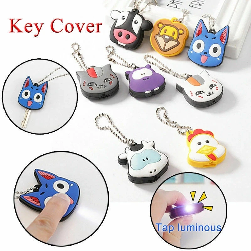 1PC LED Light silikon PVC klucz pierścień Cap pokrowiec na główkę brelok Case powłoki zwierzęta kształt klucz pyłu osłona z uchwytem klucz łańcucha wisiorek
