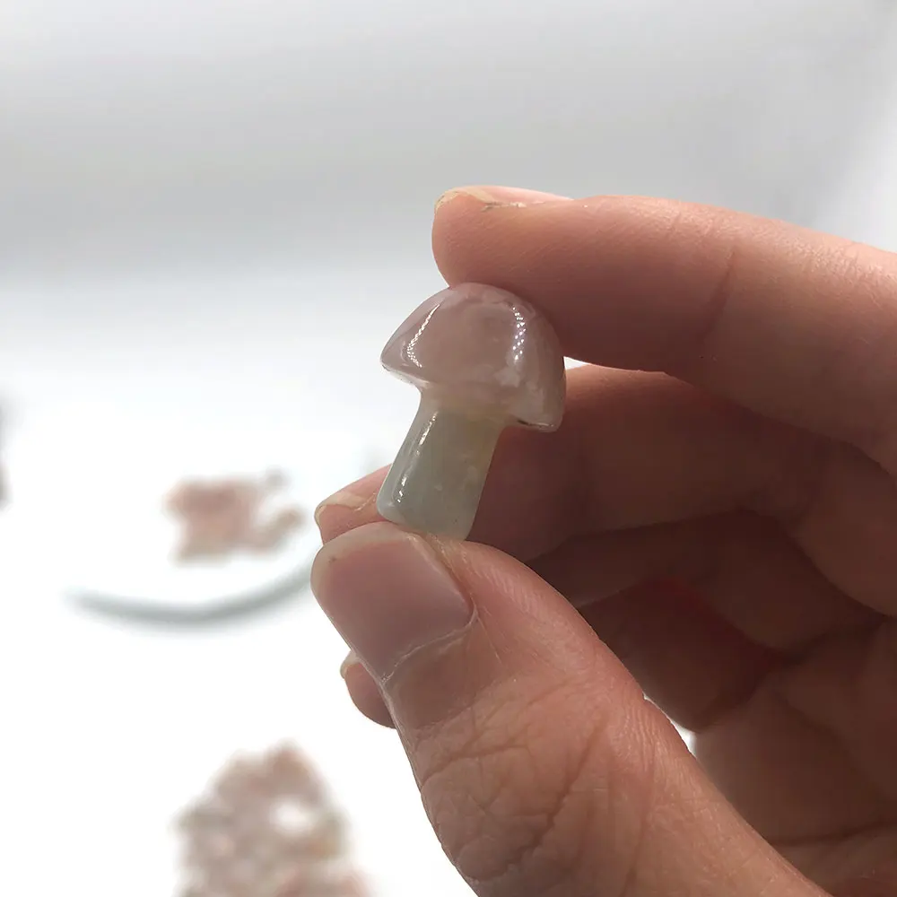 1pc Mini grzyb statua rzeźbione kamień naturalny kryształy Rose Quartz akwarium czary uzdrowienie wystrój pokoju dekoracji wnętrz 2cm