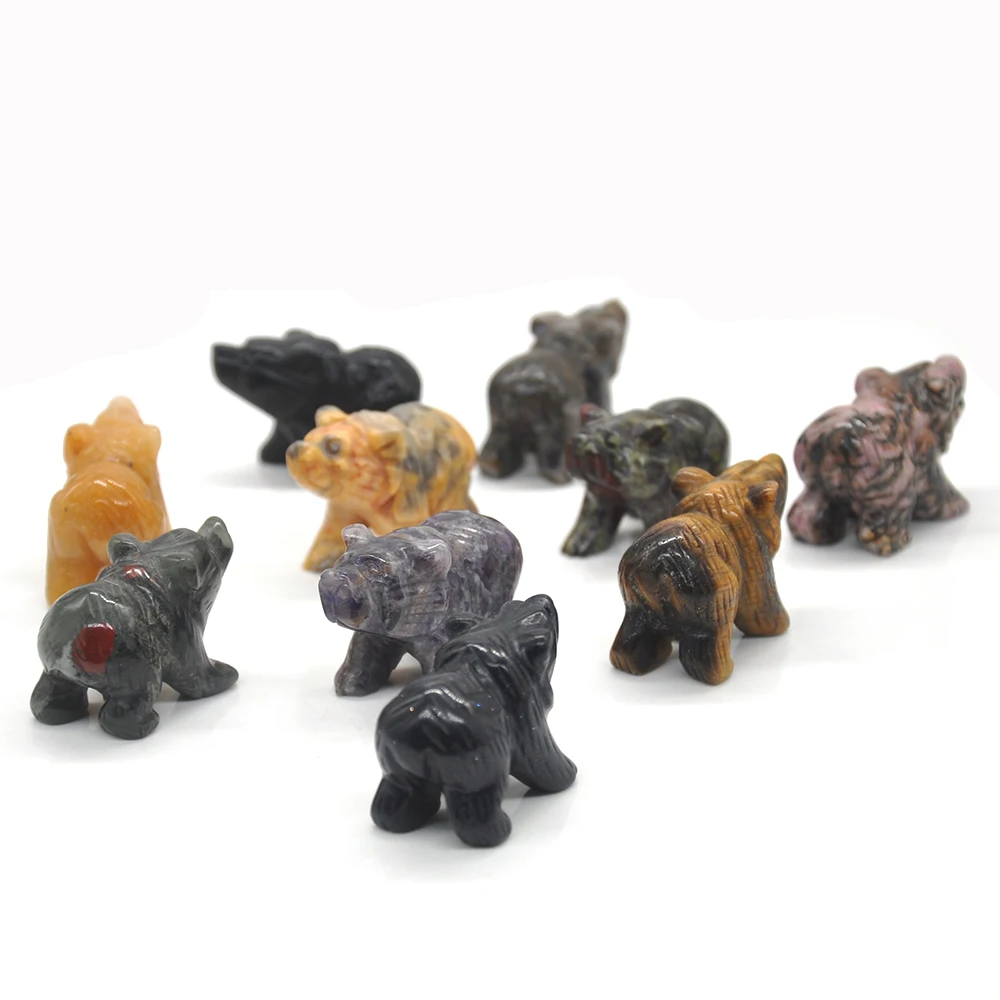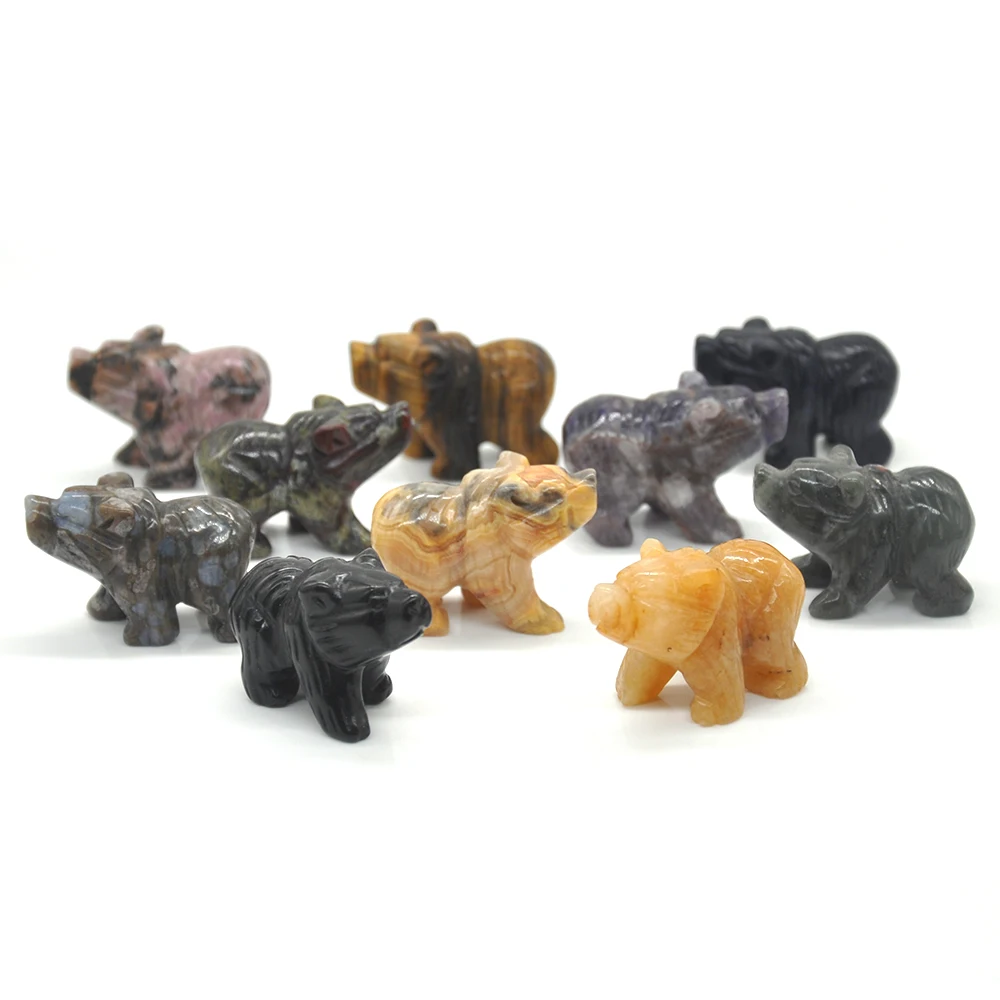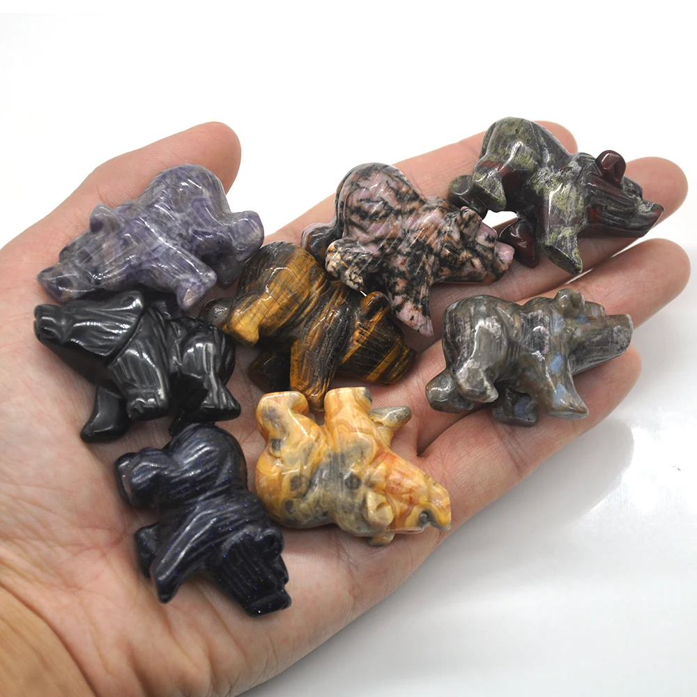 1PC niedźwiedź statua naturalny ametyst tygrysie oko róża uzdrawianie kwarcem kryształ zwierząt ręcznie rzeźbiony kamień Ornament postać Home Decor