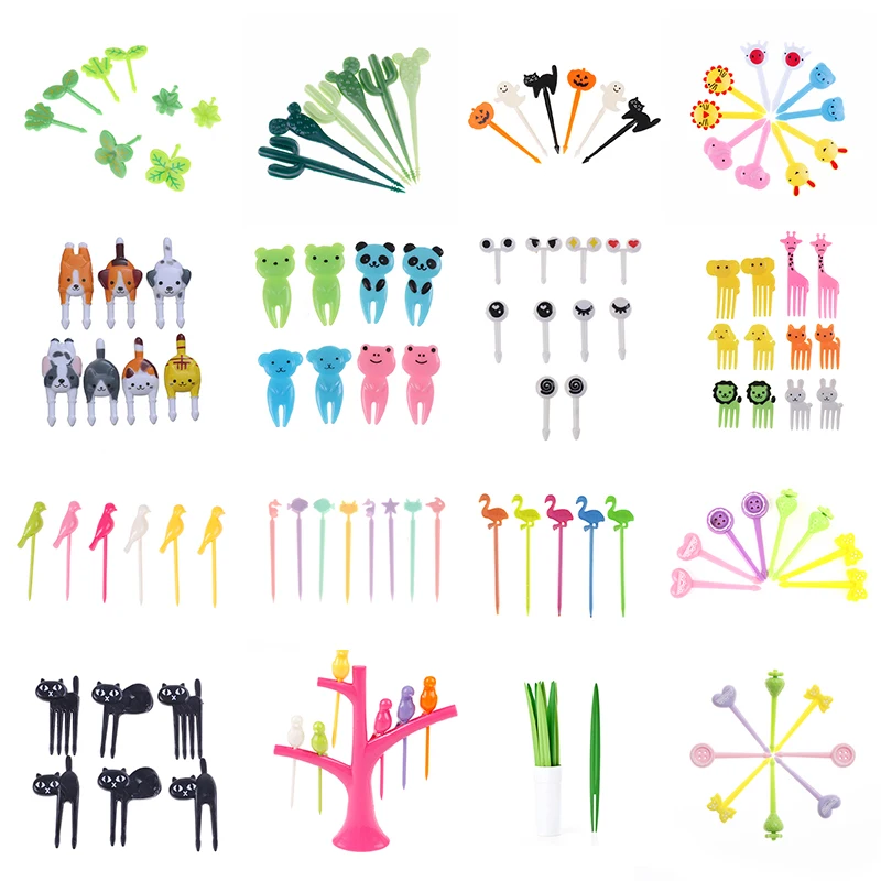 Słodkie zwierzaki widelce z owocami dekorują twoje jedzenie i sprawiają, że wygląda smaczniej.