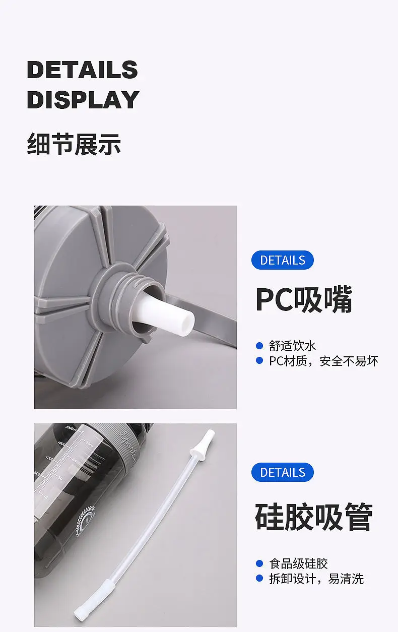 2 litrowe butelki sportowe Fitness plastikowa butelka ze słomką o dużej pojemności dziewczyna wspinaczka na zewnątrz butelka do picia czajnik BPA za darmo