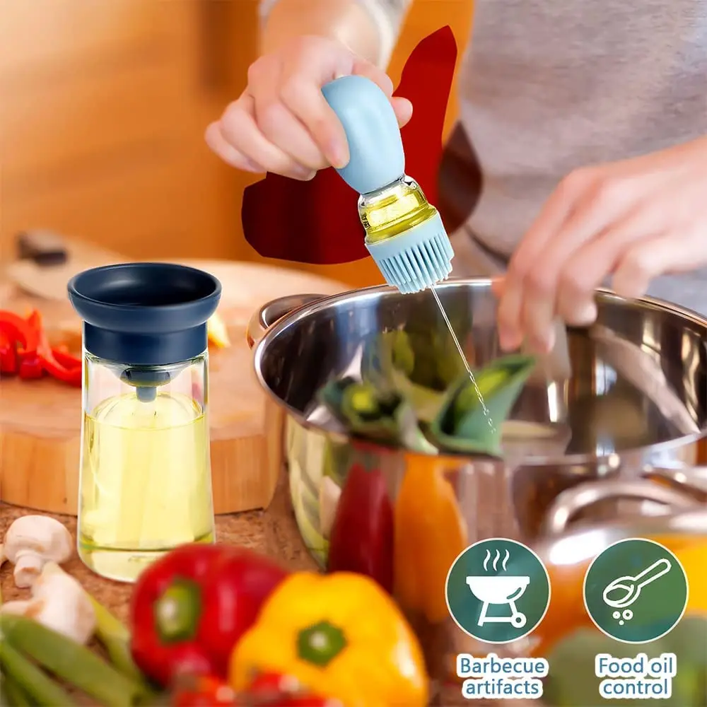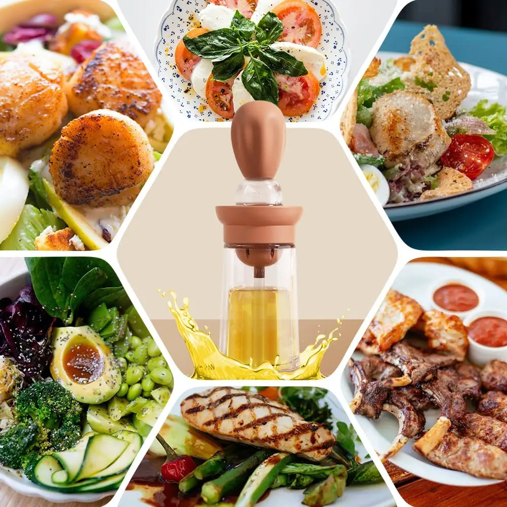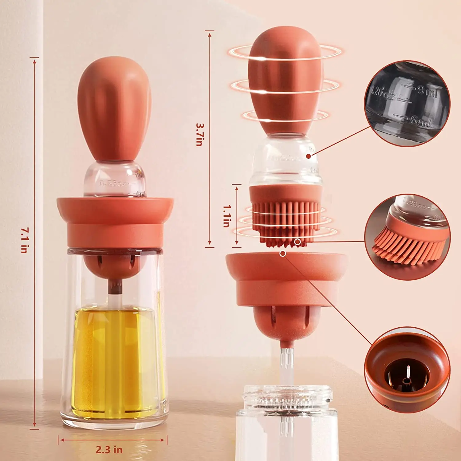 【Precyzyjna butelka kontroli oleju】: włóż szczotka silikonowa do butelki, zamknij ją, lekko szczypta, szybko wejdź do oleju. Wyjmij szczotkę, delikatnie wyciśnij olej na powierzchni patelni, a następnie szczotkuj. Mała, precyzyjna butelka pozwala łatwo kontrolować ilość użytego oleju, co sprawi, że żywność będzie zdrowsza, bez wycieku oleju, łatwa do czyszczenia, wielokrotnego napełniania i wielokrotnego użytku.