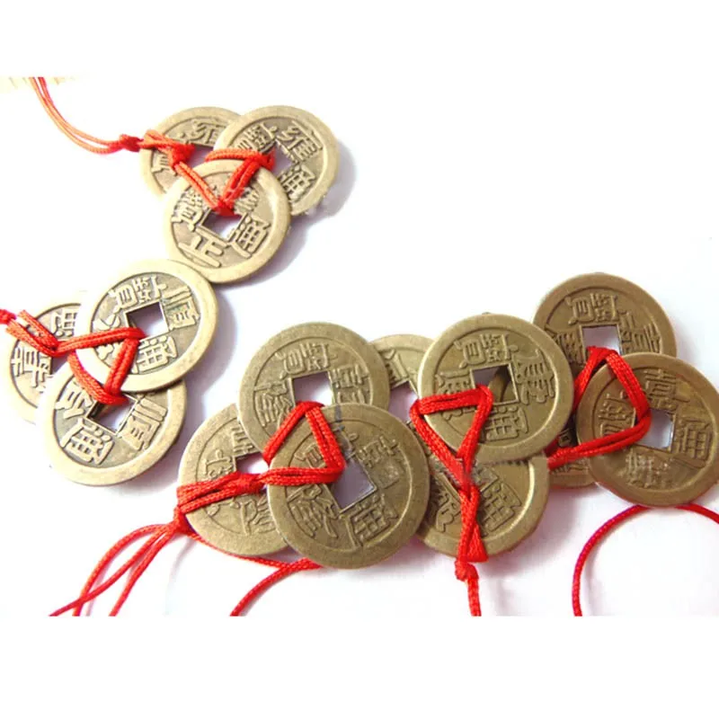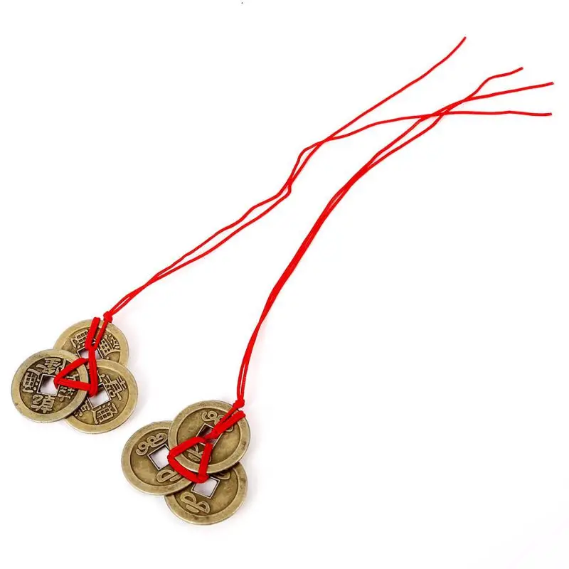 2 zestawy 3 chiński Feng Shui monety dla bogactwa i sukcesu szczęście orientalny cesarz Qing pieniądze antyczny wisiorek najlepsze życzenia prezenty