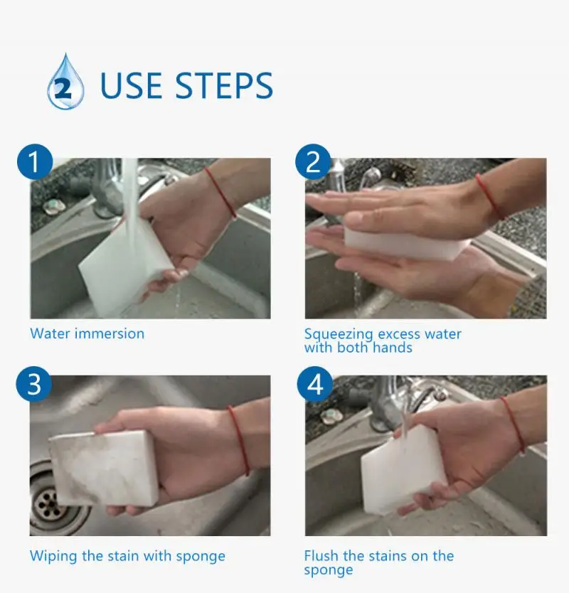 Może usuwać plamy bez detergentu. Ekstremalna moc usuwania plam z gąbki jest nie do powstrzymania.