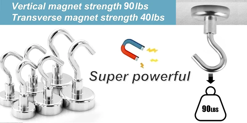 20Pcs Strong Magnetic Hooks Heavy Duty Wall Hooks Hanger Key Coat Cup Hanging Hanger for Home Kitchen Bar Storage Organization