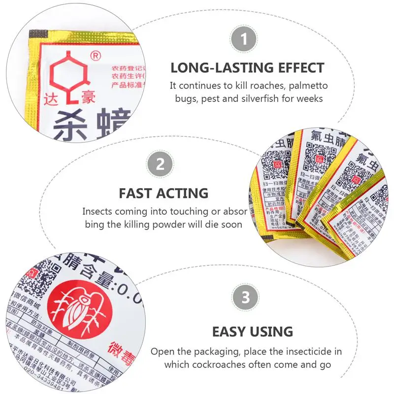 Czy kiedykolwiek miałeś problemy z zabijaniem annonying pest? Ten przedmiot jest wysoce skutecznym proszkiem do zabijania karalucha, który jest atrakcyjny i trujący dla karalucha, ale nie szkodzi ludziom. Może utrzymać twoją kuchnię, łazienkę lub sypialnię z dala od karalucha, zapewnia czyste i wygodne środowisko życia. Odsuwa się od kłopotów nienawidzenia karalucha na zawsze.