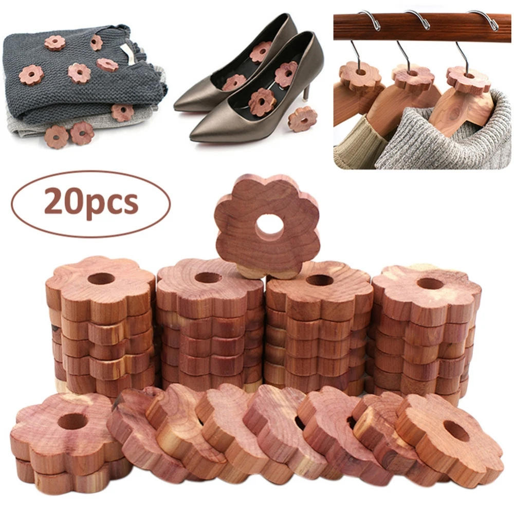 20 sztuk z drewna cedrowego blok z drewna cedrowego pierścień drewna okrągły kawałek szafa naturalny, czysty, środek odstraszający owady kamfory Moth piłka 30