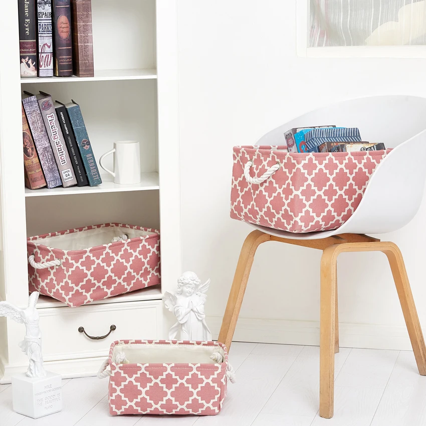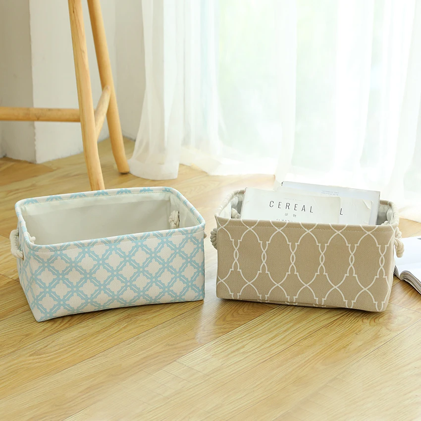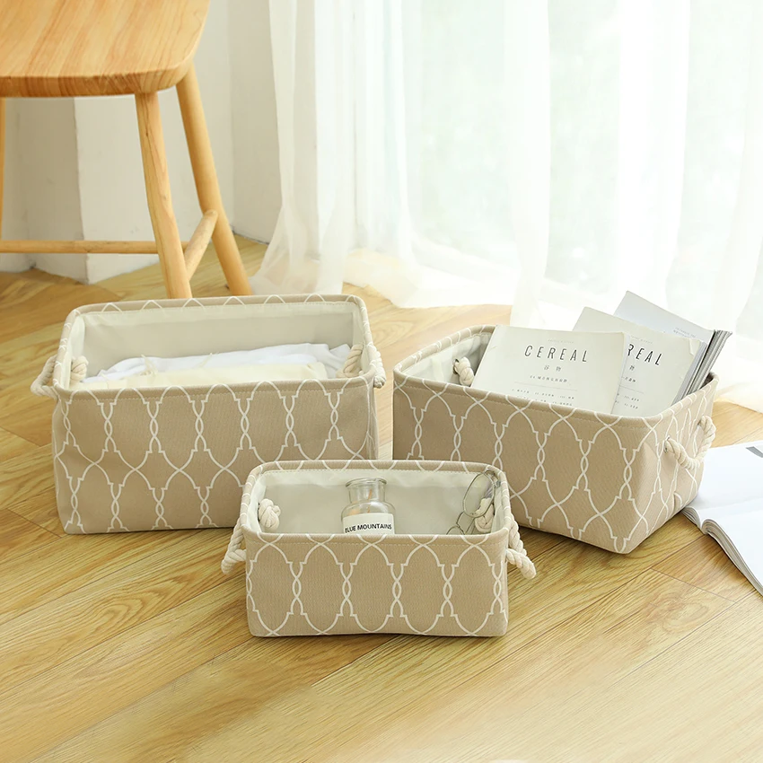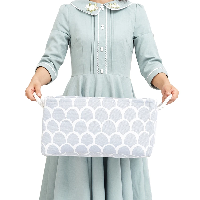 [Trwałe i stylowe uchwyty]Plecione wbudowane uchwyty są stylowe i mocne. Ulepszone uchwyty mają doskonałą nośność. Prezentuje zgrabną fakturę liny z nowoczesny nadruk. Ten projekt pasuje do większości dekoracji domu; Prostokątny kształt z miękkimi zaokrąglone rogi, więc nie porysuje skóry; Wykonane z bawełny i płótna z miękkiego elastycznego materiału i pokryte poliestrowym wnętrzem; doskonały do organizowania kuchni, salonu, łazienki, szaf, pokoju zabaw i samochodu