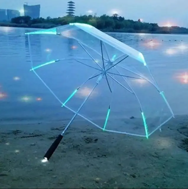 Kolorowe diody LED Parasol przeciwdeszczowy elektroniczny latarka przezroczysty Luminous Parasol wystrój domu