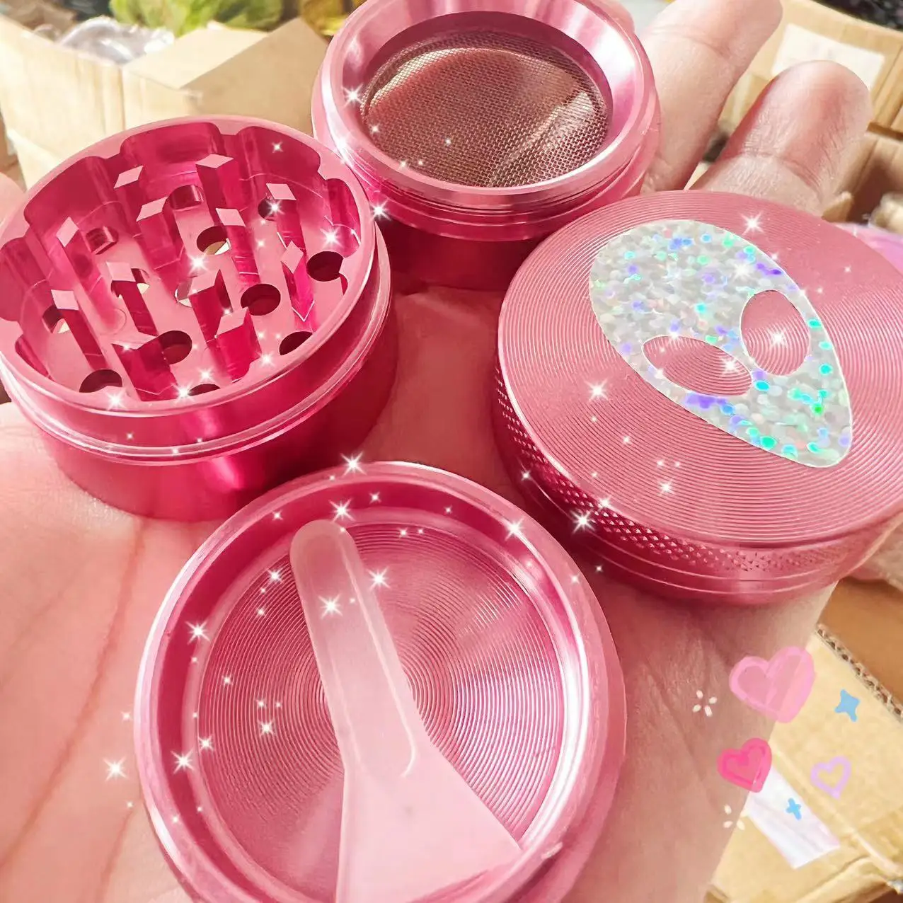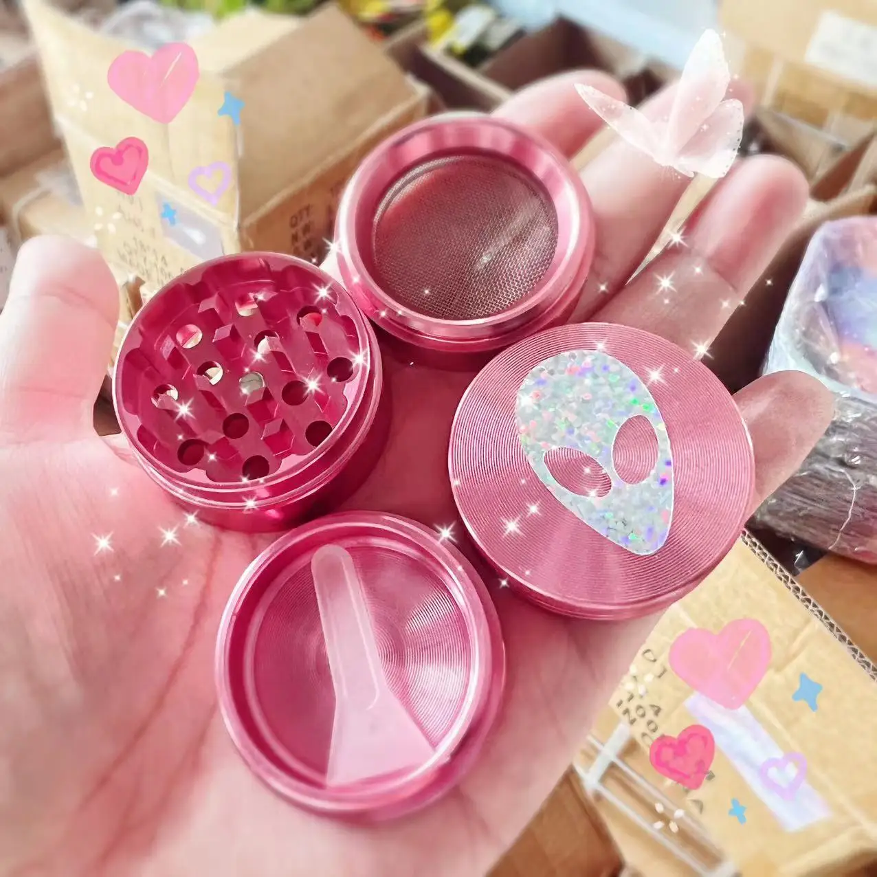 2022 nowy ET młynek ze stopu aluminium do tytoniu Herb różowy młynek dziewczyny akcesoria do palenia Abrader LOGO na zamówienie sprzedaż hurtowa