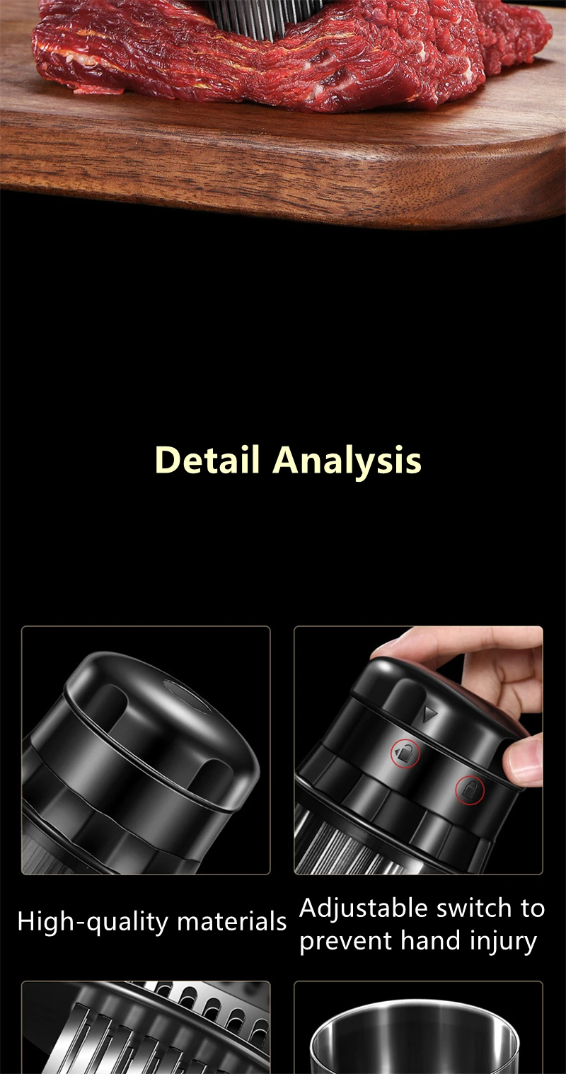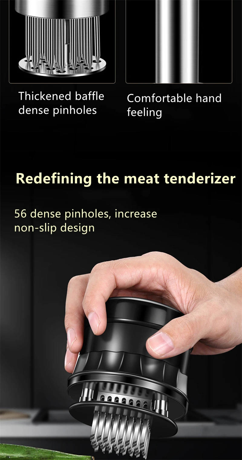 • -Bardzo ostry igła stalowa ostrza spike najtrudniejszych kawałków mięsa, dzięki czemu można cieszyć się pyszne pyszne i smaczne profesjonalne dania za ułamek kosztów. Zamień twarde kawałki mięsa w stopiony stek w ustach w ciągu kilku sekund. Idealny do wszystkich kawałków mięsa, zachowując smak i przyjemność dla ciebie i wszystkich twoich gości za każdym razem!