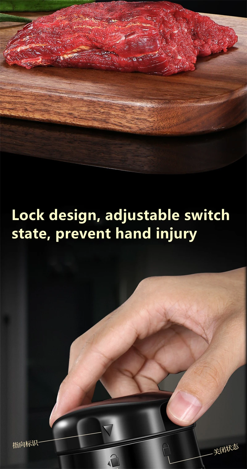 • -Wyprodukowane do bardzo wysoki standard, z jedzeniem klasy tworzywo ABS i ostrza ze stali nierdzewnej, ten wytrzymały zbudowany urządzenie ma zaprojektowane tak, jednostka sprężynowa, że sprytnie chowa się ostrza, aby bezpieczeństwa o przebite w sposób czysty i łatwo za pośrednictwem twojego mięsa. Posiada ergonomiczny kształt, aby wygodnie dopasować rękę; Po prostu naciśnij na urządzeniu, aby użyć, aktywując trzy rzędy super silny, bardzo ostry ostrza.