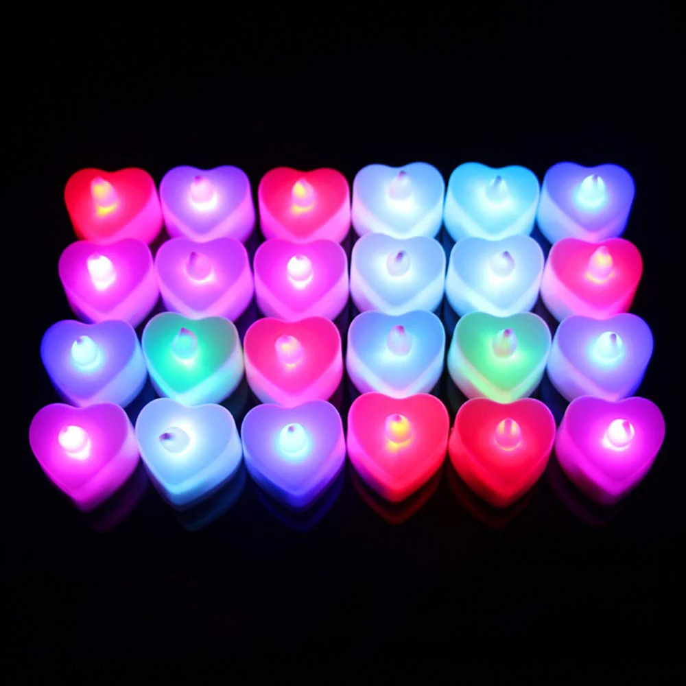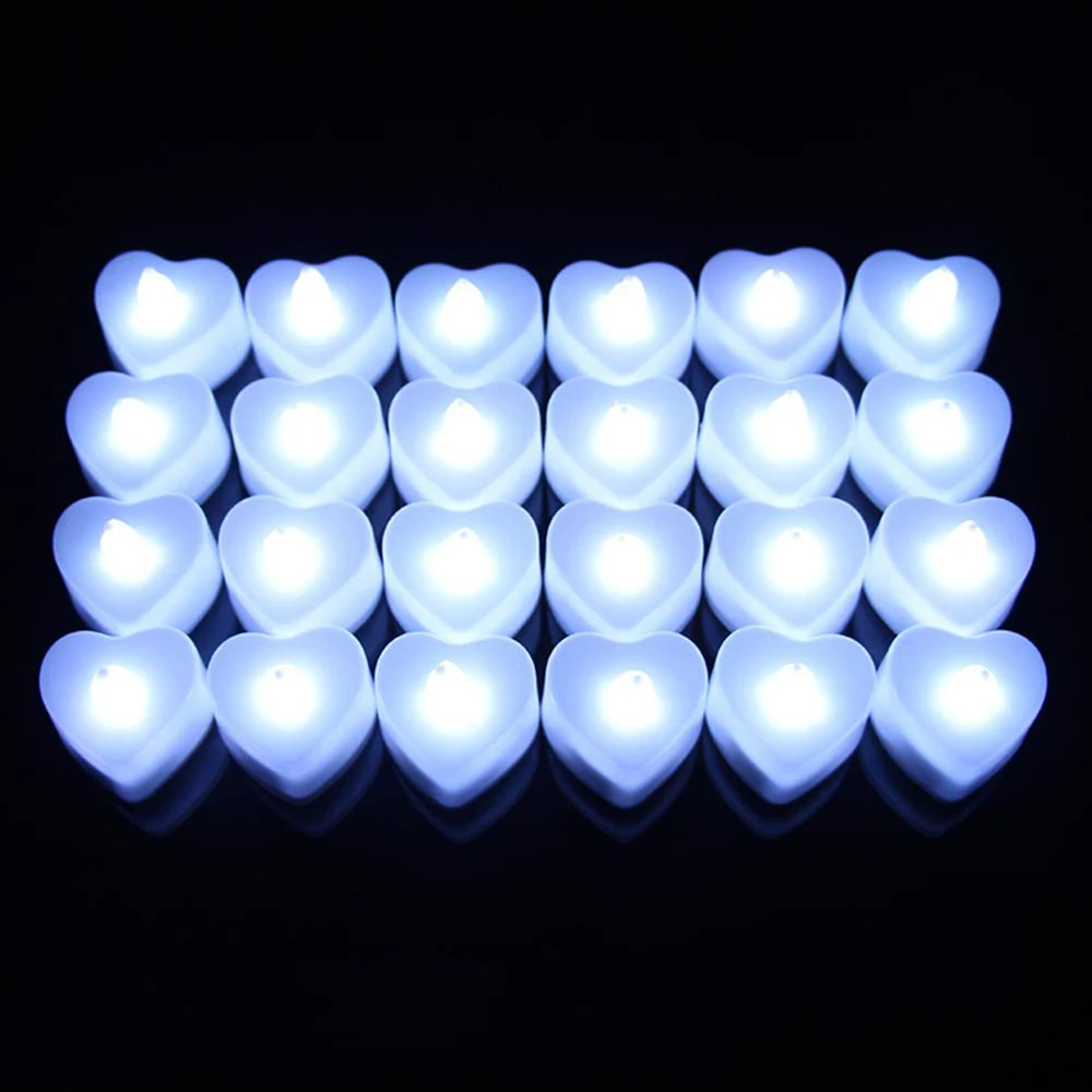 24/48 sztuk romantyczny LED Tea Light Love Heart Shaped migotanie świeca elektryczna lampka nocna na wesele Valentine Decoration