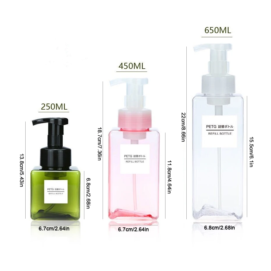 250/450/650ml dozownik do mydła wielokrotnego napełniania butelka kwadratowy płyn do mycia ciała dozownik szamponu łazienka prysznic spienianie pusta butelka