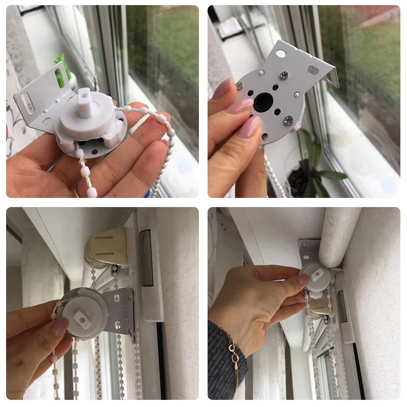 Włóknina okna samoprzylepne rolety odcienie plisowane Zebra Roller Blackout zasłony do sypialni salon balkon prywatność17mm roleta Shade sprzęgło wspornik boczny koło pasowe łańcuch boczny naprawa zestaw montażowy zabiegi okienne zasłony wykonane z koralików