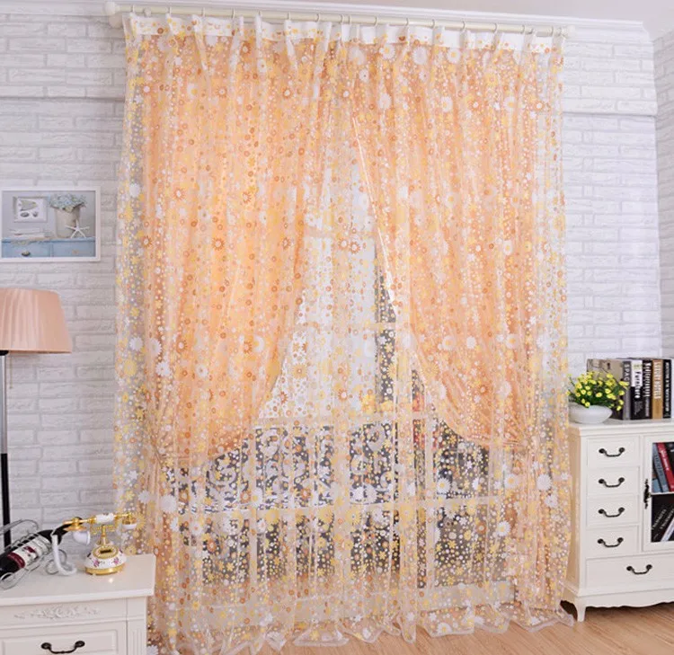 2016 nowy słoneczniki wzór nadrukowany okno woal zasłony 100*200 CM domu kurtyna dekoracyjna salon przezroczysty, tiulowy VB243 P62
