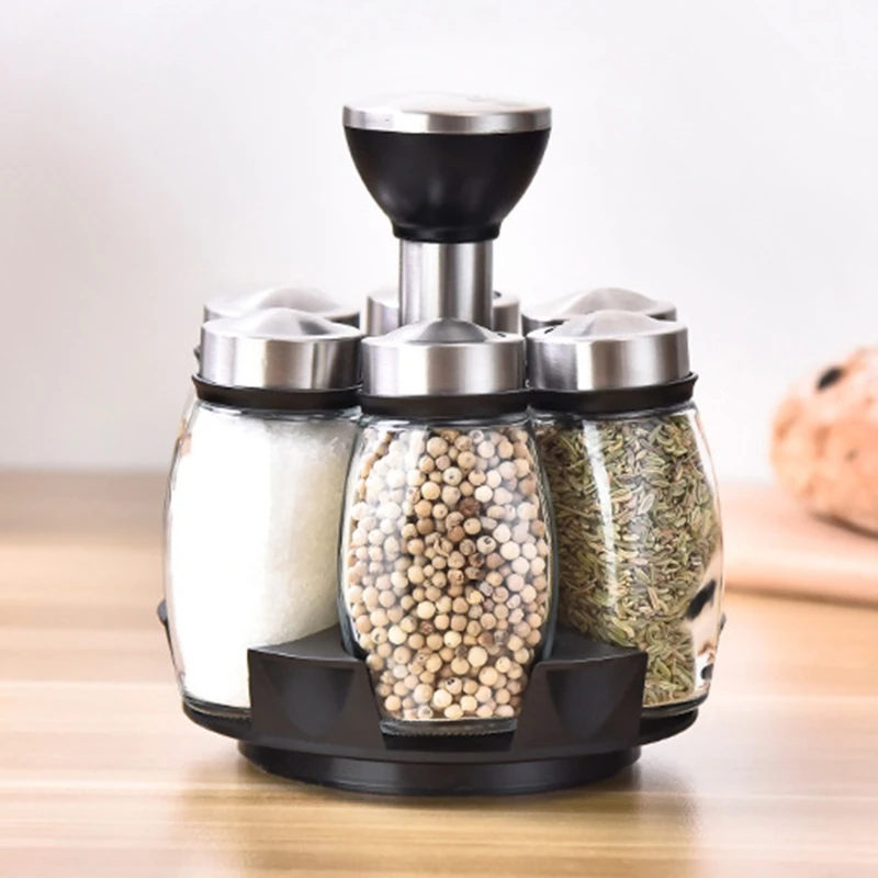 6 słoików obrotowy blat stojak na przyprawy Organizer z 6 szklanymi pojemnik na przyprawy 85LA