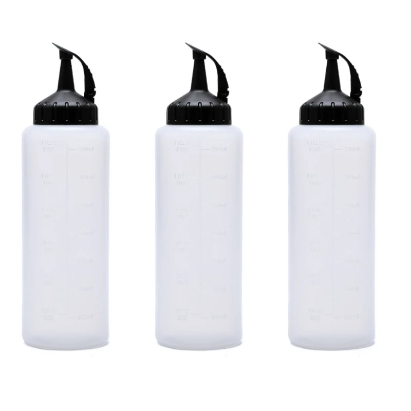 Pakiet zawiera: 1x 3-pack plastikowe butelki do wyciskania