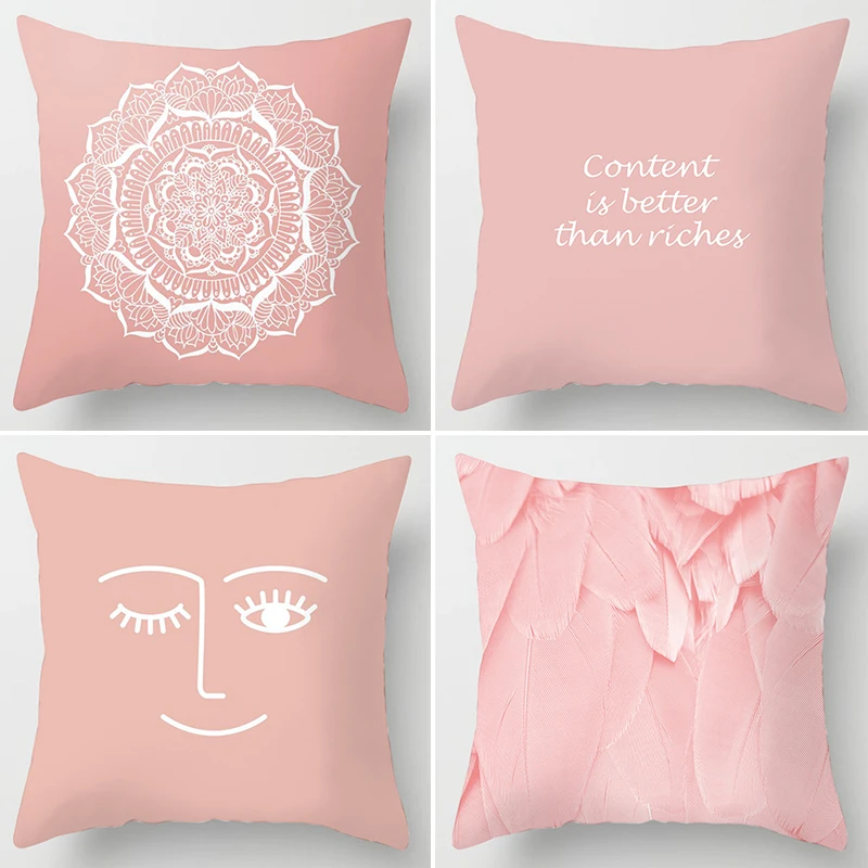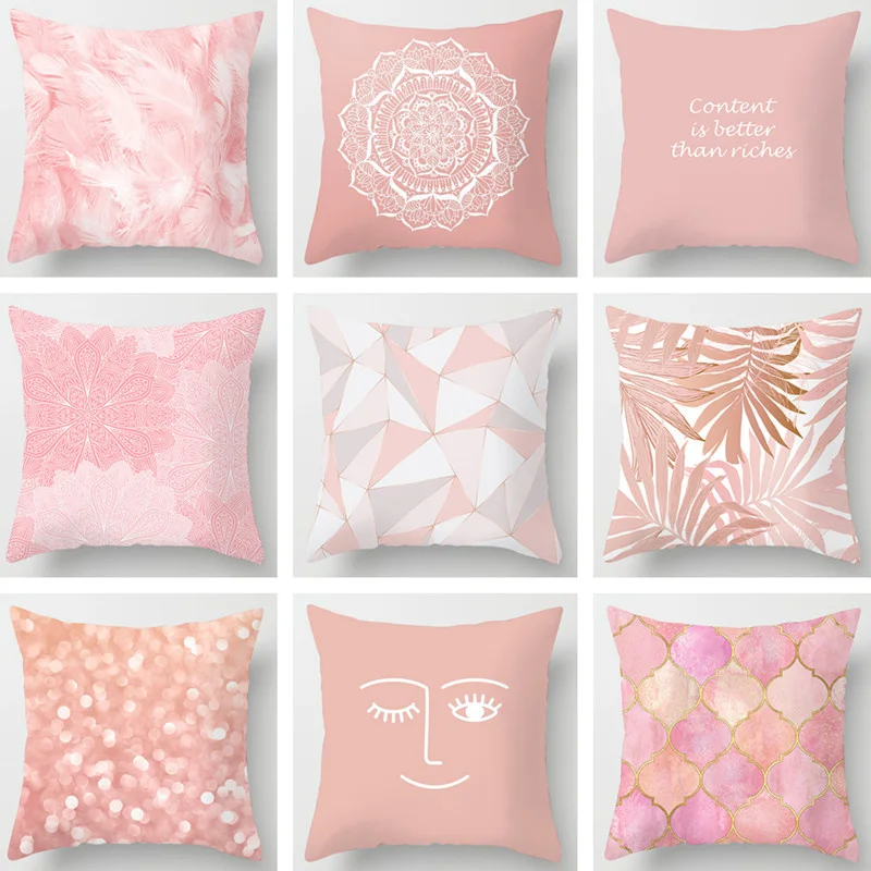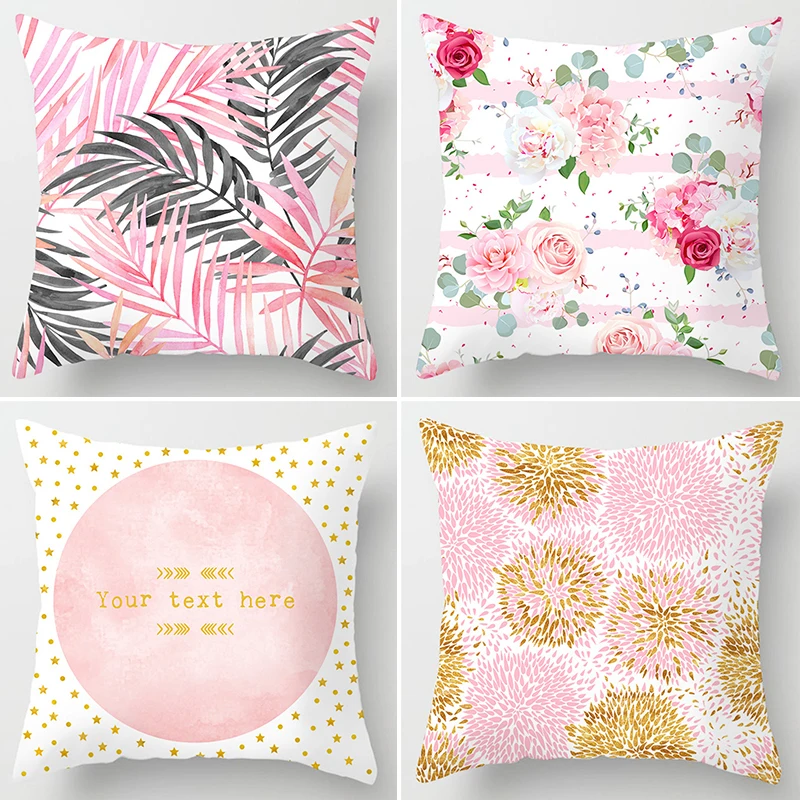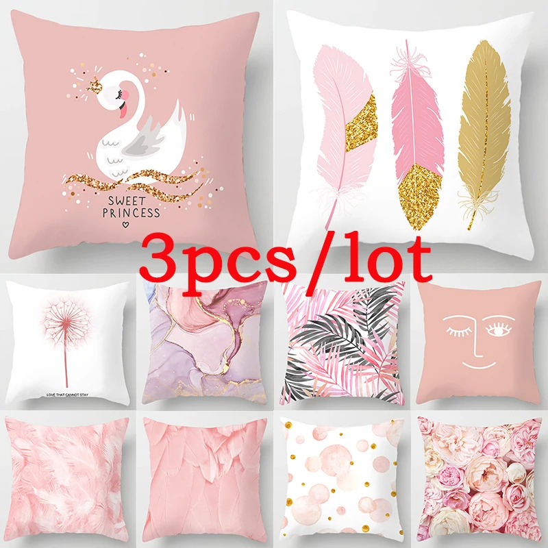3 sztuk różowy kwiat pióro poszewka na poduszkę z poliestru Sofa do salonu dekoracji wnętrz 45×4 5cm roślina liściasta marmuru poduszka z wcięciem przypadku