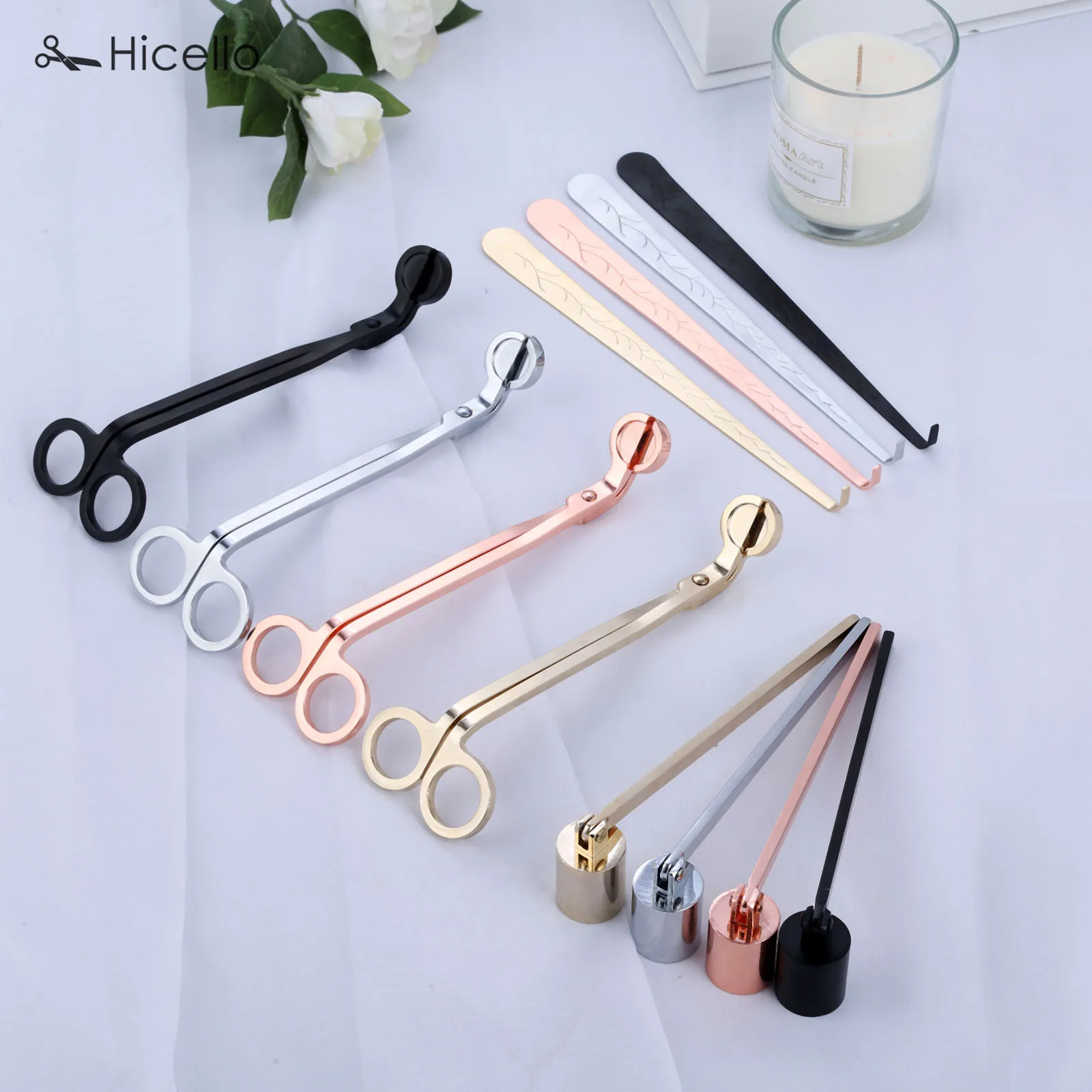 Be the first to review “3 sztuk/zestaw świeca snaffer trymer hak ze stali nierdzewnej luksusowa świeczka nożyczki knoty uchwyt Dipper Home Deco różowe złoto srebrny czarny”