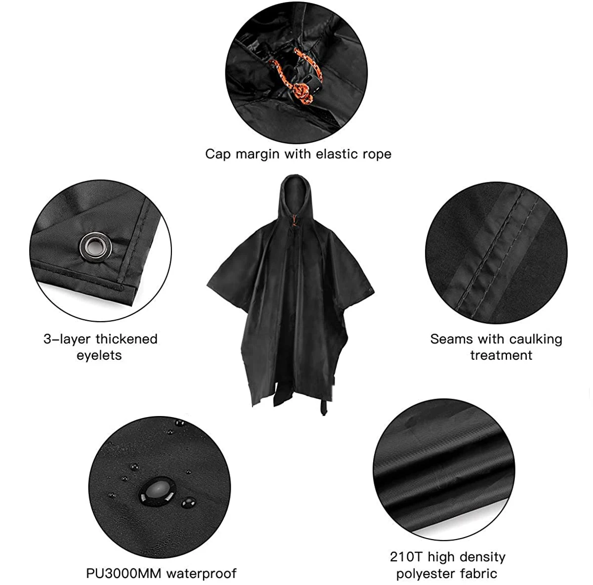 Użyj jako schronienia awaryjnego lub śpiwora, gdy jest używany jako ponczo wojskowe, chroni ciebie i twój plecak przed silnym wiatrem i deszczem, uniwersalny łatwy w noszeniu płaszcz przeciwdeszczowy