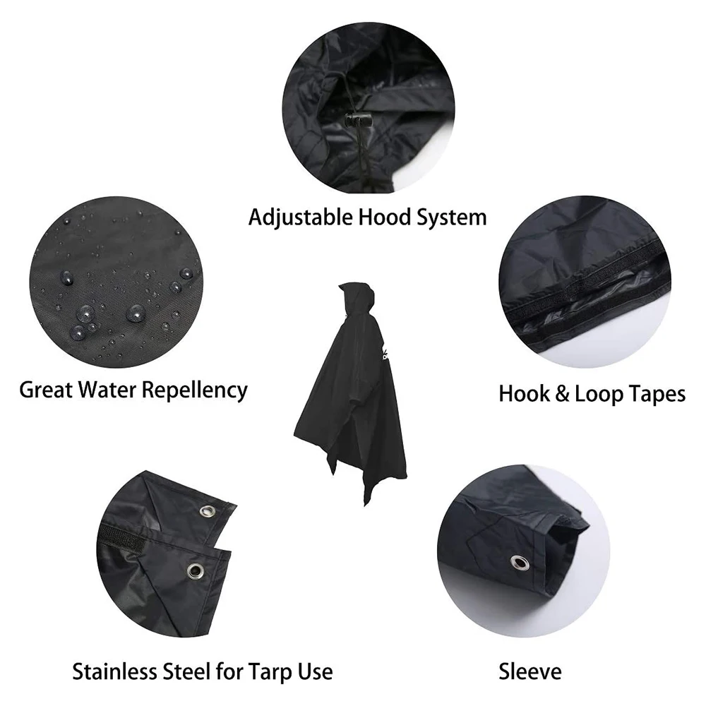 ► [Kaptur i rękawy]: płaszcz przeciwdeszczowy ma kaptur i rękawy, rozmiar kaptura można regulować za pomocą sznurka, lepiej pasuje do głowy i utrzymuje głowę i szyję w suchości, boczne szwy i rękawy płaszcza przeciwdeszczowego są przyklejone rzepem, dzięki czemu ramiona i ciało są suche