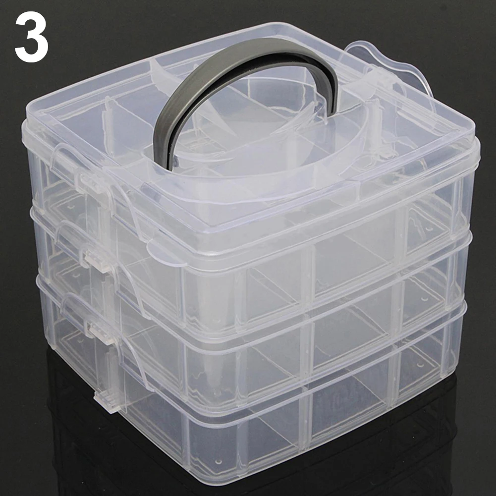 3 warstwy 18 przegródek przeźroczyste pudełko do przechowywania pojemnik organizator koralików z biżuterii Case Rangement Cajas organizadoras plastikowe pudełko