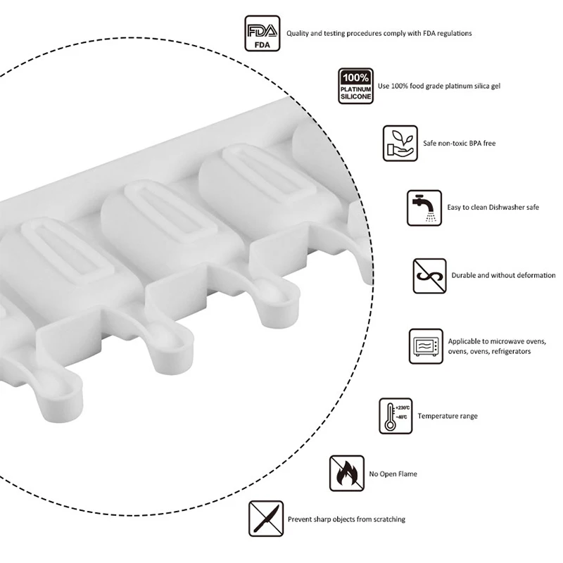 Oven,refrigerator,freezer,microwave,steamer,Ice-Cream Silicone Molds,Ice cream mold/Silicone Mold,Ice Cream Bar Mold,silicone popsicle mold,for kitchen,silicone mold,silicone molds,Hight quality safe non-stick food grade silicone,Flexible and non-stick,Ice Mold,Silicone forms