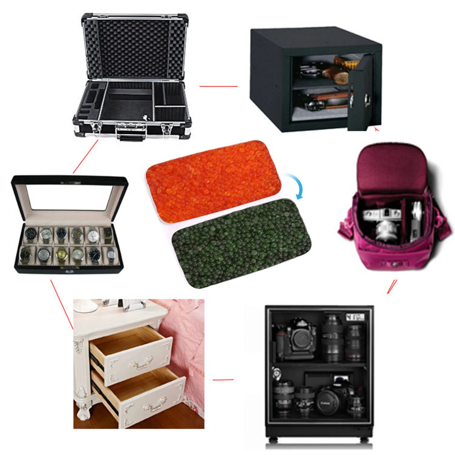 Można wskazać efekt higroskopijny: higroskopijny żel krzemionkowy pomarańczowy stopniowo stał się zielony! Wielokrotnego użytku, bezpieczny i praktyczny!