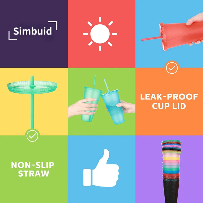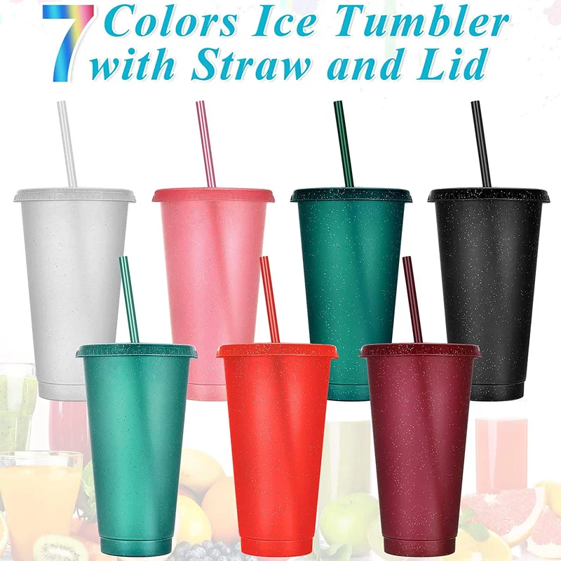 Z pokrywką i słomką: błyszczący plastikowy kubek wielokrotnego użytku z pokrywką i kubek ze słomką.