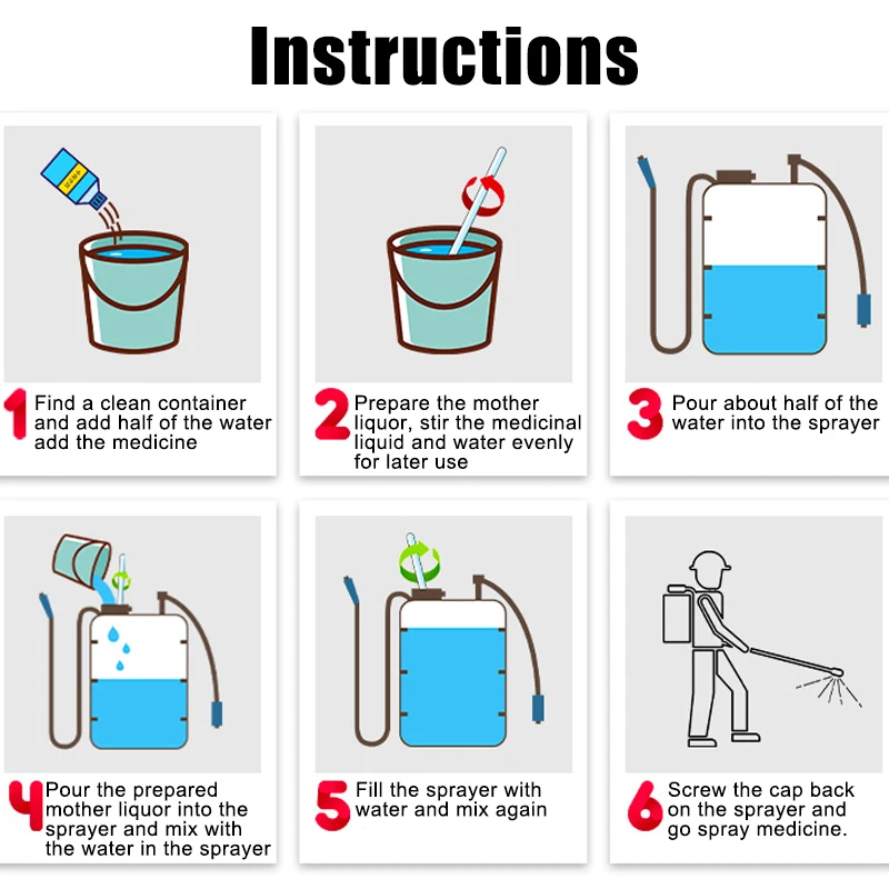 1. Zastosuj w okresie, w którym chwasty rosną energicznie. Rozcieńczyć wodą o niskiej twardości, ściśle używać wody o wysokiej twardości i mętnej wody 2. Rozcieńczyć, aby uniknąć wpływu na skuteczność. Podczas opryskiwania spryskaj w kierunku, nie pozwól, aby ciecz dryfowała do sąsiednich upraw oraz łodyg i liści drzew cytrusowych, aby uniknąć fitotoksyczności.