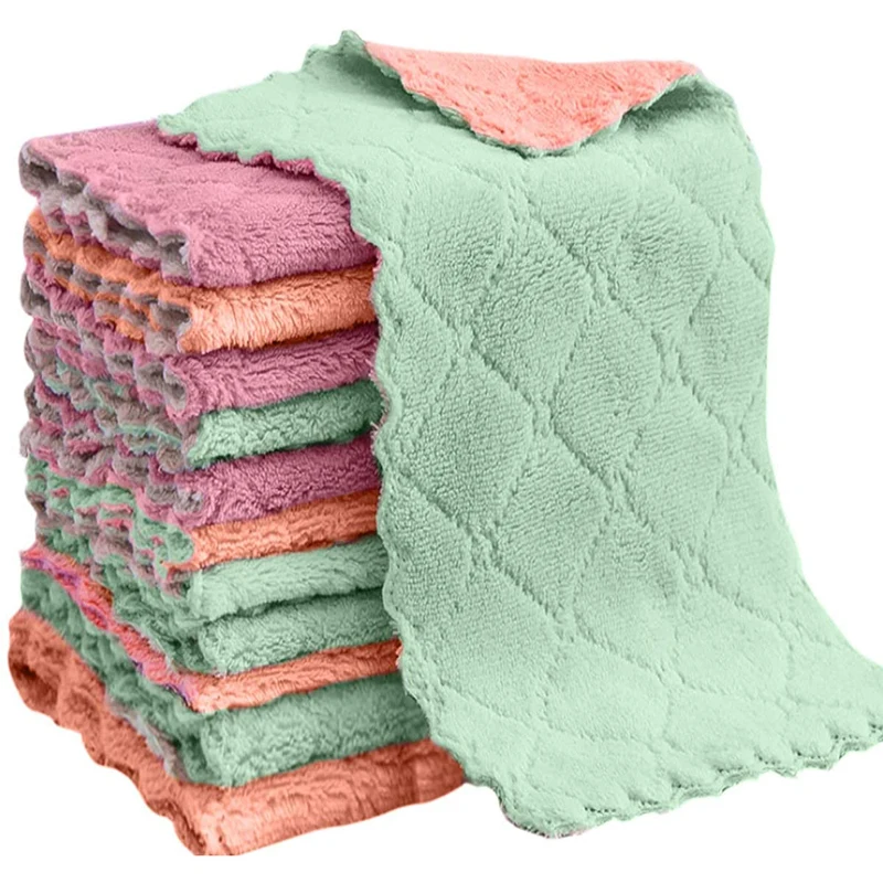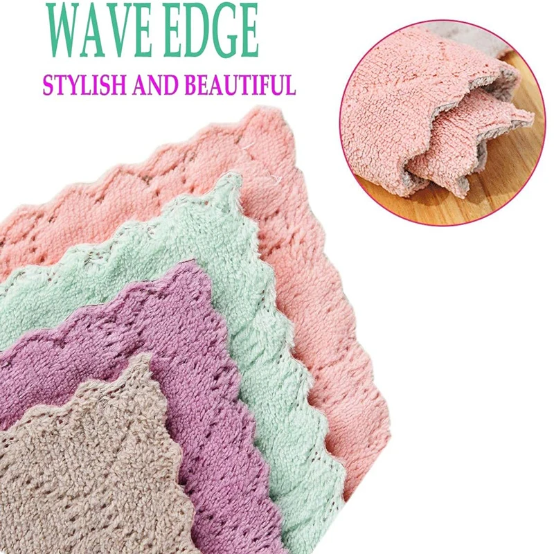 5 sztuk dwuwarstwowa chłonna mikrofibra kuchnia danie tkaniny non-stick oleju ściereczka do czyszczenia gospodarstwa domowego wycieranie ręcznik domu Kichen narzędzie