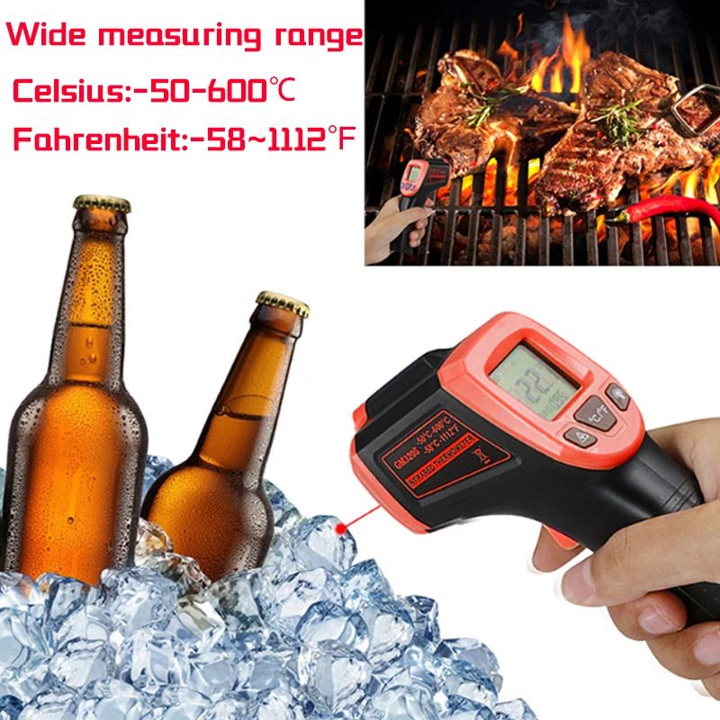 -50 ~ 600 ℃ termometr na podczerwień bezdotykowy laserowy pistolet termiczny IR Termometro LCD Alarm świetlny pirometr Imager CF podświetlenie