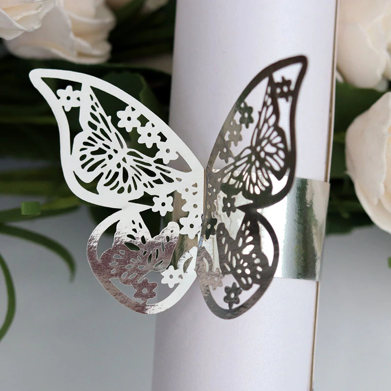 50 sztuk motyl pierścienie na serwetki ślub urodziny boże narodzenie dekoracja na stół serwetki pierścienie posiadacze zaopatrzenie firm dobrodziejstw