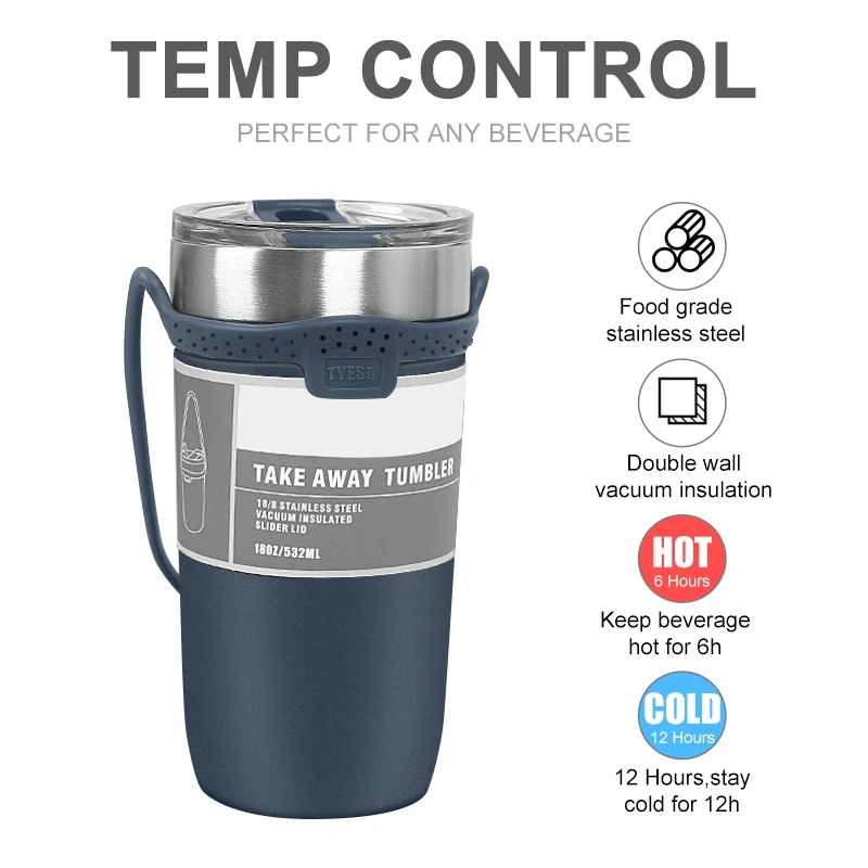 Izolowany podróżny kubek na kawę: podwójna pusta przestrzeń między ściankami ze stali nierdzewnej utrzymuje napoje gorące do 7 godzin i zimne do 9.
