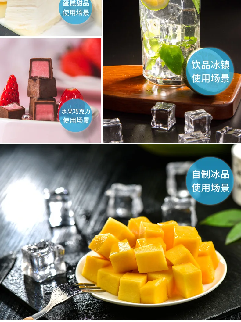 Forma kostki lodu jest zdrowa i bezpieczna w użyciu, może bezpośrednio kontaktować się z żywnością.