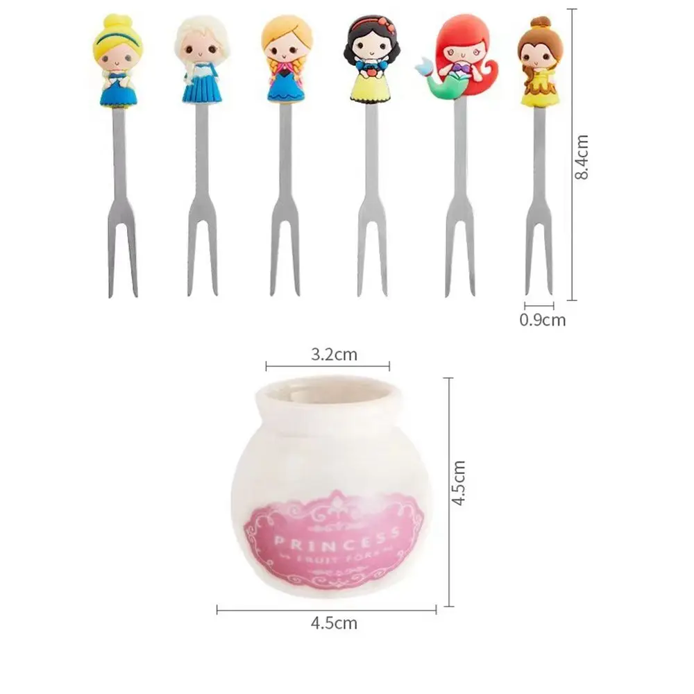6 sztuk/zestaw Cute Cartoon księżniczka ze stali nierdzewnej deser widelec do owoców s z zestaw świeczników Mini sałatka widelec do owoców żywności sztućce