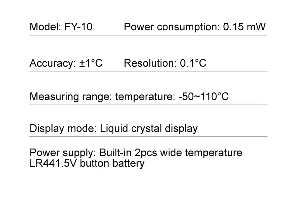 -50 ℃ do 110 ℃ pomiar temperatury, rozdzielczość 0.1 stopni.