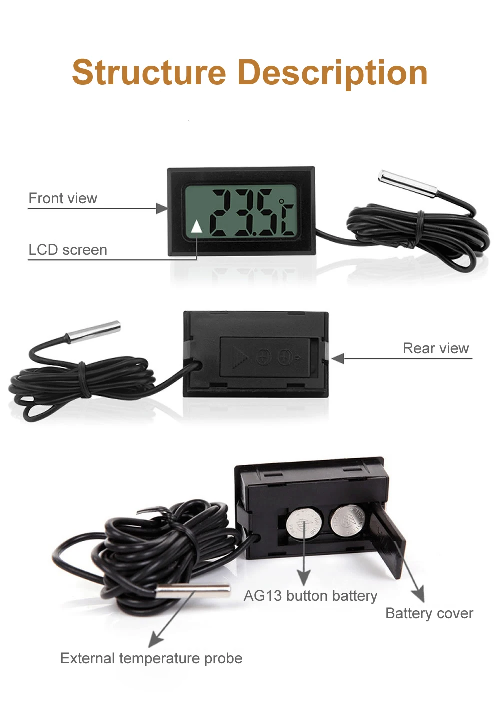 1 x cyfrowy termometr LCD (bez baterii)