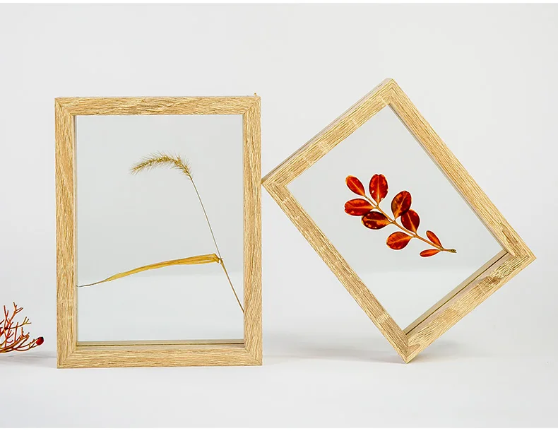 Dwustronne szkło ramka na zdjęcia DIY roślina okazy rama z litego drewna sala weselna dekoracja stołu ramki do zdjęć Ornament