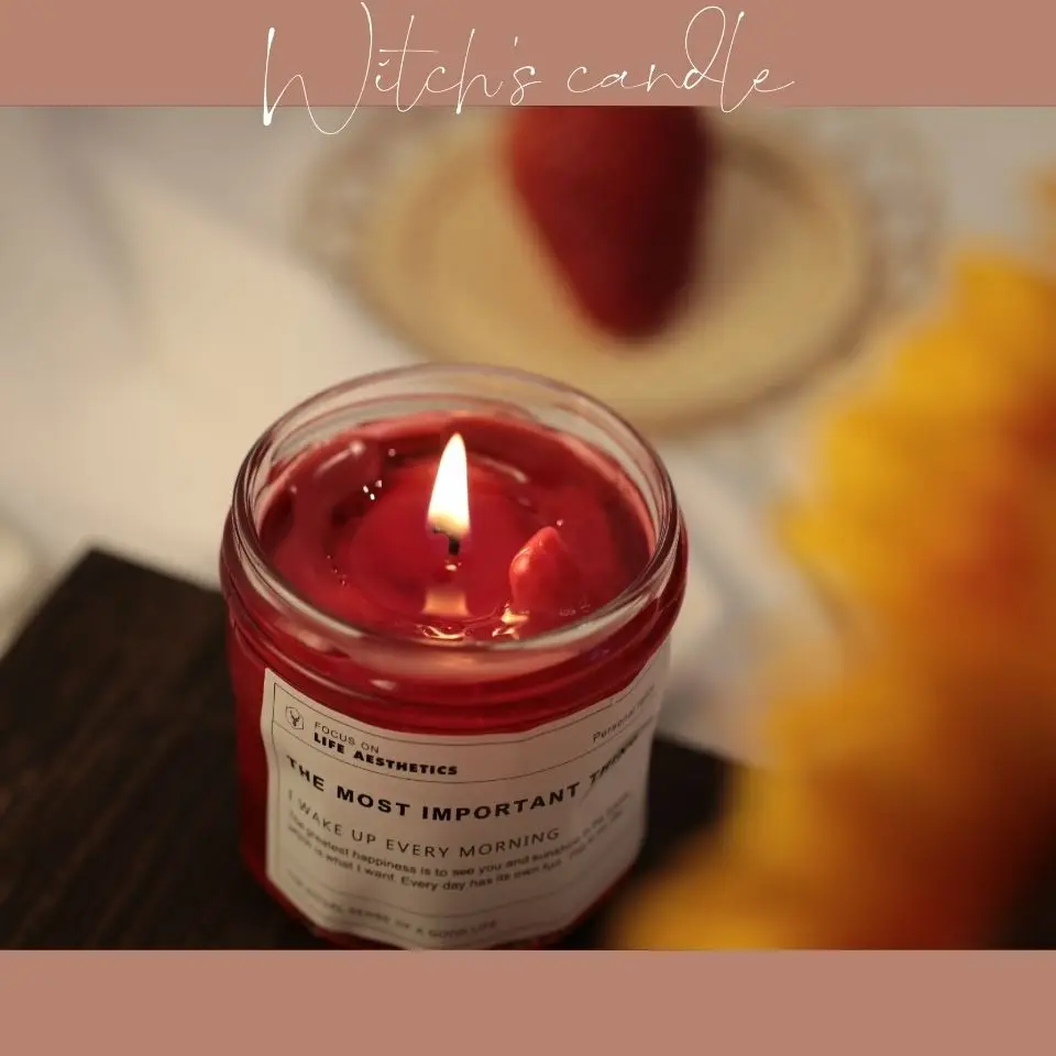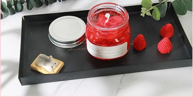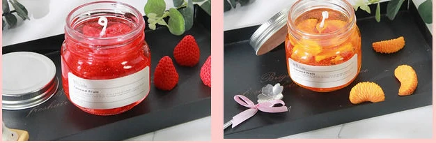 Napełnij powietrze słodkim zapachem dżem truskawkowy, świece są ręcznie wykonane z wysokiej jakości wosku żelowego i olejek zapachowy.