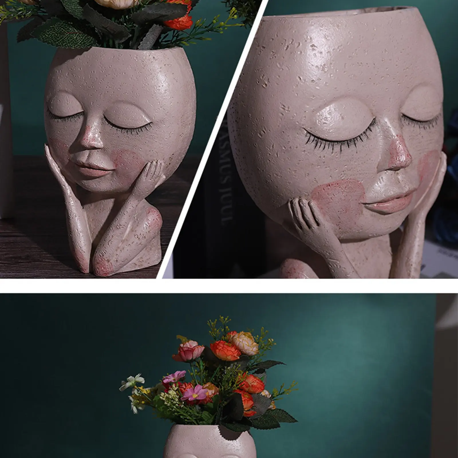 1. Materiał: wykonany z wysokiej jakości materiał żywiczny, bezpieczny i nietoksyczny nowoczesny humanoidalny portret żywicy wazon soczysty kwiat układ doniczka.