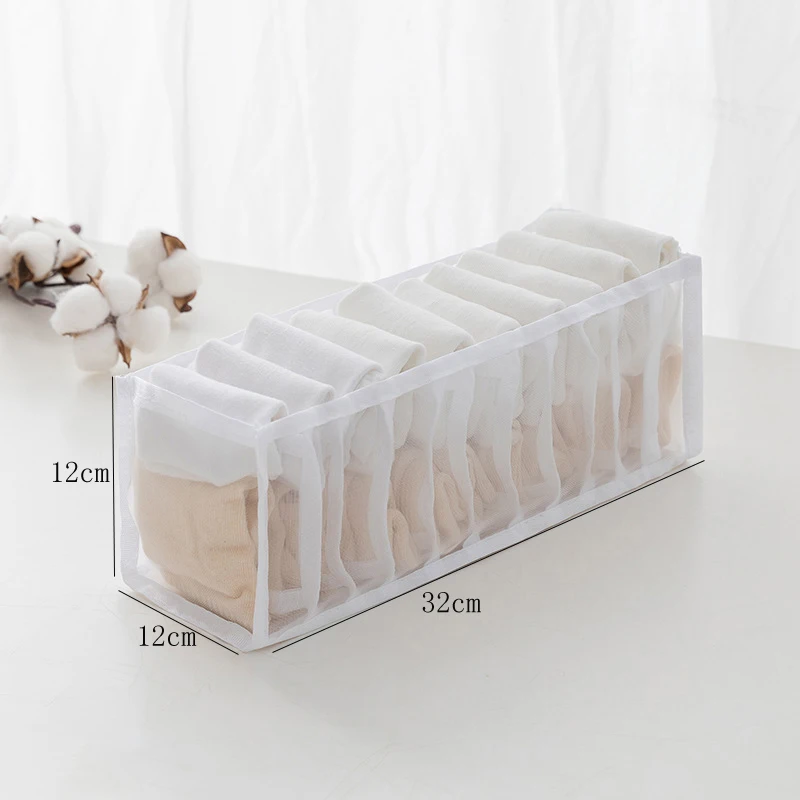 6. Knickers 7 siatek (długość 32x szerokość 12x wysokość 12cm): można przechowywać 7 sztuk bielizny dla dorosłych lub 14 sztuk bielizna dla dzieci.