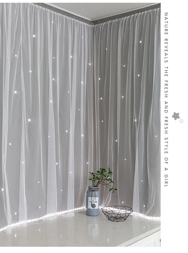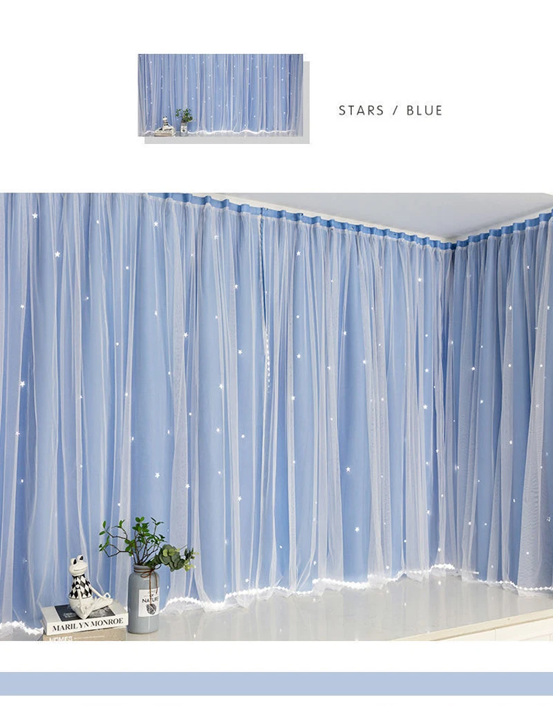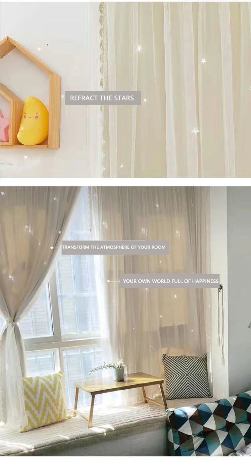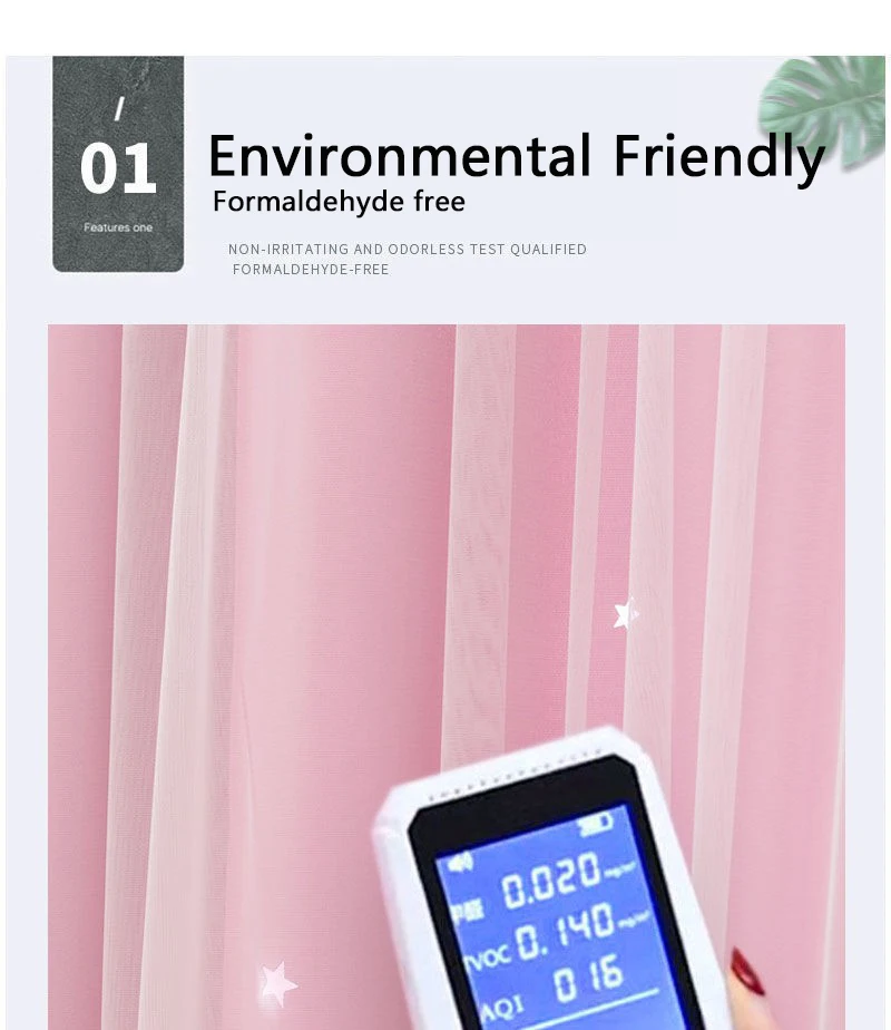 2. Ta kurtyna ma tkanina zaciemniająca i gazę, dobry efekt cieniowania, może skutecznie blokować promienie ultrafioletowe i chronić skórę.