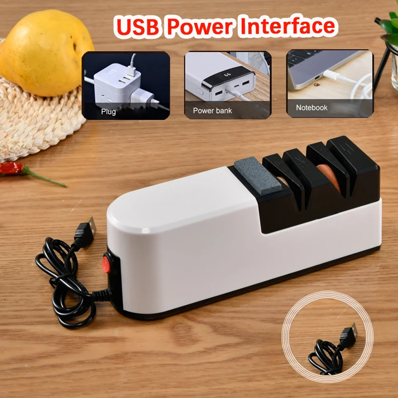 Elektryczna ostrzałka do noży USB regulowana do noży kuchennych scyzoryk nożycowy ostrzenie białe średnie i szlifowanie ostrza