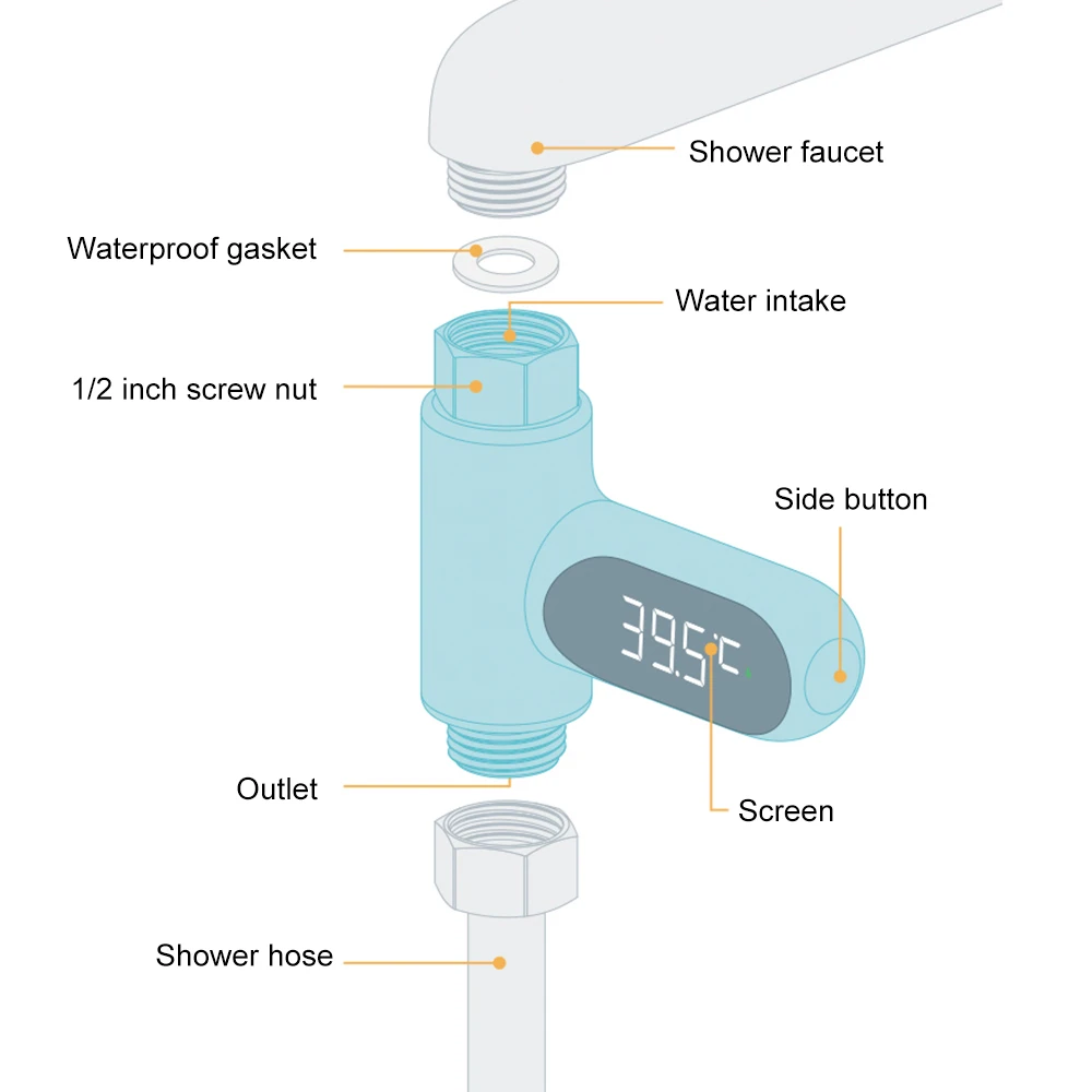 Niezwykle praktyczny termometr prysznicowy: dzięki temu termometrowi możemy wziąć prysznic z odpowiednią temperaturą wody, szczególnie odpowiednią dla rodziny z dziećmi.