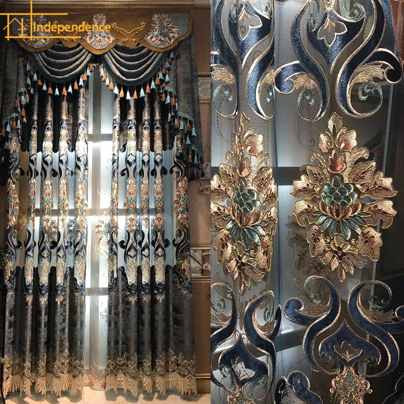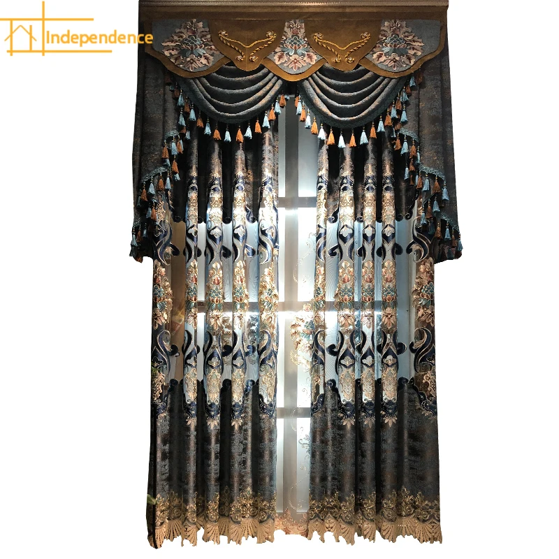 Europejski styl wysokiej klasy Chenille Hollow rozpuszczalny w wodzie haft moskitiera na okno zasłony do salonu sypialnia wykończone Valance