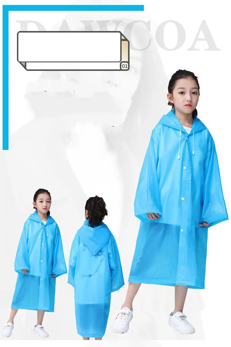 Nazwa produktu: EVA zagęszczony płaszcz przeciwdeszczowy dla dzieci wielokrotnego użytku przezroczysty moda odzież przeciwdeszczowa płaszcz przeciwdeszczowy z kapturem dziewczyna i chłopiec wycieczka na świeżym powietrzu słodkie Poncho