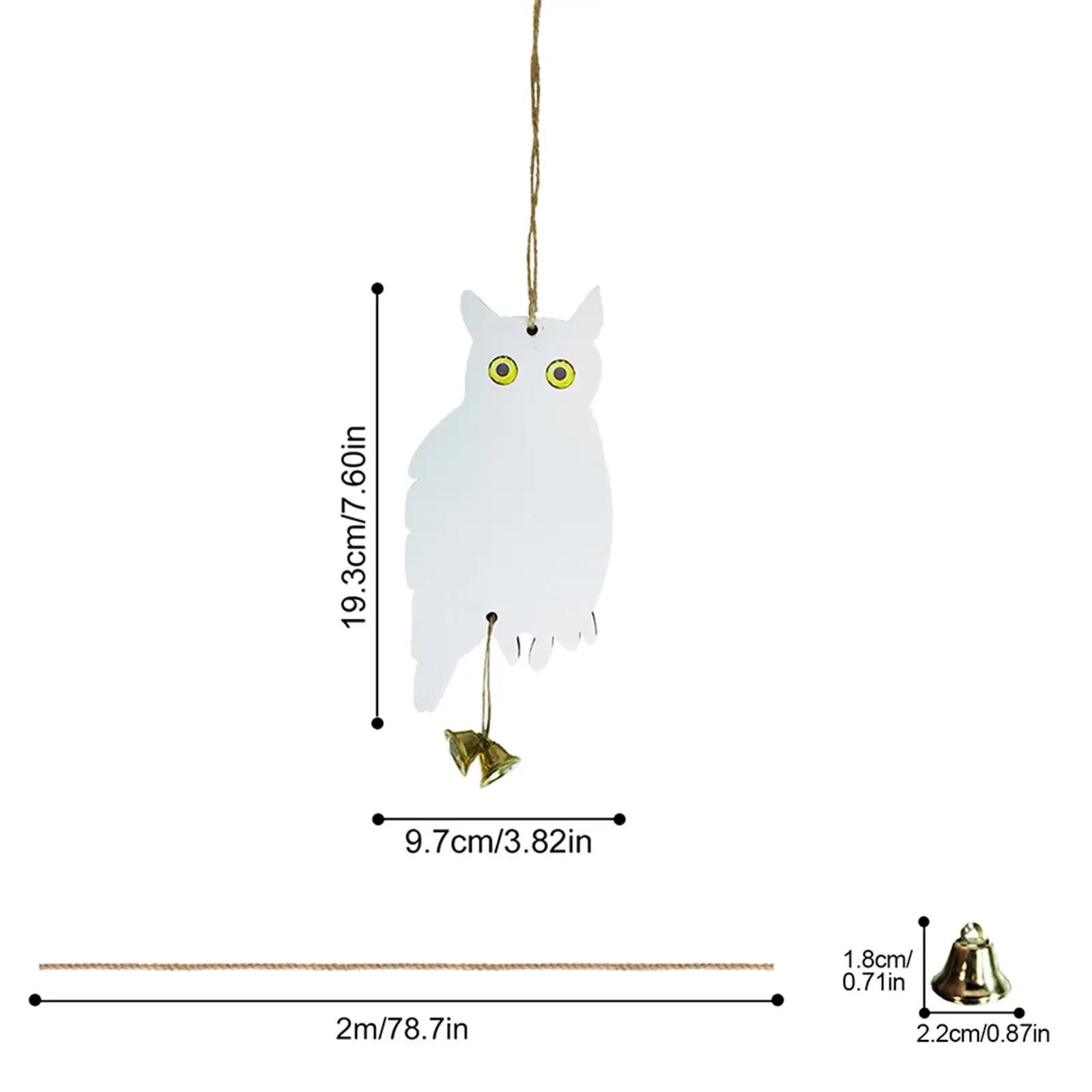 Dekoracja dziedzińca. Srebrna sowa odblaskowa może pasować do każdego stylu tarasu. Duży dzwonek na dole może dodać szczęśliwą atmosferę do dziedzińca lub pokoju.