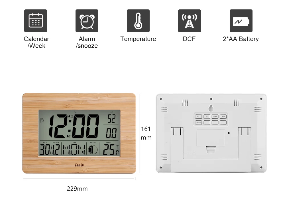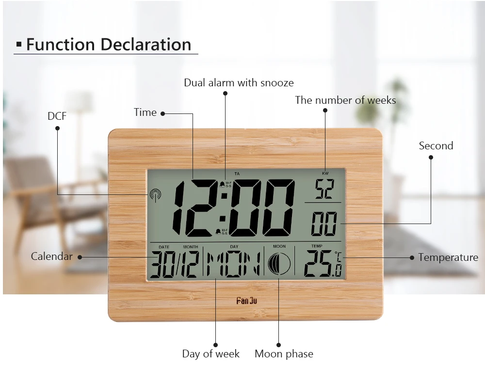 (1) automatyczna regulacja czasu za pomocą częstotliwości DCF. Ta funkcja tylko dla niemiec, inne kraje powinny ją wyłączyć